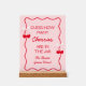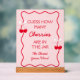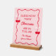 Élevez votre thème de baby shower sur le cerisier avec ce panneau en acrylique personnalisé pour le jeu de devinette Combien de cerises pour la Baby Shower. Parfait pour un thème de baby shower sucré ou pour les thèmes de baby shower de février, il ajoute de l'amusement et du charme. Idéal pour un thème de baby shower cerise sur le gâteau, une douche de nubilée elle est la cerise sur le gâteau, ou même une douche de nubilée de la Saint-Valentin, ce panneau de jeu est un centre de table charmant pour n'importe quelle célébration.