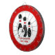 Boule de bowling et planche à pinsdart qui présente une icône minimaliste de trois épingles de bowling noir avec des rayures rouges, une balle et votre texte sur un arrière - plan blanc avec une bordure rouge. Ce design cool est un modèle et il est entièrement personnalisable.