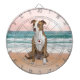 Jeu De Fléchettes Chien Pitbull mignon assis sur la plage avec couch
