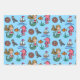 Un magnifique design de vie marine avec sirènes, hippocampe, bateau, dollar de sable, poisson, oiseau et herbe de mer avec bandes et pois correspondants.