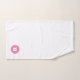Serviette de bain monogramme à point Polka. Serviette de bain : monogramme rond en rose et blanc avec un arrière - plan de pois bleu marine et blanc. Serviette à main : monogramme rond en rose et blanc sur un arrière - plan blanc. Lave-linge rose.