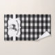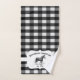 Ajoutez une touche rustique à votre décor de bain avec un ensemble de serviettes de bain Black Buffalo Plaid Farm Horse. Le design des serviettes comprend ce charmant animal de ferme sur une étiquette élégante et du texte personnalisé pour vous de personnaliser avec votre nom de famille contre un arrière - plan motif en vichy. Autres éléments de décoration disponibles avec ce design.