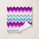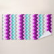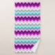 Un ensemble de serviettes de bain avec un beau design motif coloré de chevrons en plum violet ombre, lilas, blanc, minty turquoise, turquoise et gris.