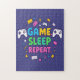 Le puzzle parfait pour les joueurs ! Ce puzzle coloré "Game, Sleep, Repeat" présente des éléments amusants sur le thème du jeu comme les contrôleurs, consoles et accessoires. Un grand défi pour les amateurs de jeux vidéo qui veulent prendre une pause de l'écran et profiter d'un peu de plaisir hors ligne!