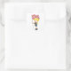 Un dessin d'une fille debout tenant un drapeau à damiers rouge et blanc. Ce design semble vraiment efficace sur ce Stickers