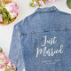 Célébrez le grand jour avec cette veste en jean personnalisée ! Avec la phrase "Just Married" dans une police de caractères script élégante, ce modèle peut être personnalisé avec les noms des couples, la date du mariage, le lieu, ou tout texte de votre choix. Un cadeau attentionné et élégant que votre mariée adorera ! Couleurs imprimées : blanc sur jean bleu.