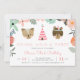 Les invitations adorables pour le troisième anniversaire de votre animal sauvage comprennent une bordure florale de saumons, une paire d'animaux de bébé en bois doux et une illustration de tipi rose. "Jeune, sauvage et trois" apparaît dans les lettres de pêche, avec les détails de votre fête d'anniversaire en dessous. Cartes inversées à rose vif.