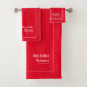Élégant ensemble de serviettes personnalisées Mme et Mme pour les mariées en rouge et blanc, avec écriture modifiable, nom et date de mariage établie