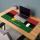 JUNETEENTH JUNETEENTH Pan African Desk Mat avec TEXTE PERSONNALISABLE. Le design montre des traits de peinture en rouge, orange et vert, avec un arrière - plan de traits de brosse rouge, jaune et vert effet grunge et une poing de puissance jaune. Ceci est placé contre les couleurs du drapeau panafricain : rouge, noir et vert. Le texte dit HAPPY JUNETEENTH. Ce Mat de bureau Junetten serait un grand cadeau pour n'importe quel décor de bureau à domicile Junetten et pour célébrer ce jour férié afro-américain de l'indépendance des Noirs.