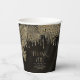 Opt for an Old Hollywood glam look by using the pieces in this wedding suite as shown, with jewels cascading off the diamond-encrusted palm leaves, or delete the jewel layers for a slightly more conservative look. This set features leaves in shimmering gold against a textured background the rich colour of black coffee. The wedding paper cup shown here has a border of sparkling leaves, a personal 'Thank You' message and the bride and groom's names and wedding date. Easily enter your details using the provided template. View the collection link on this page to see all of the matching items in this beautiful set or search ID830 to see additional colour options for this design.