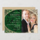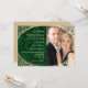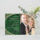 Luxury, vintage, elegant, jewel tones, emerald green wedding invitation with vintage gold frame and photo of bride and groom.