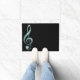 Jeweled Rhinestone Music Note Rug emerald green teal jeweled music note. Music rug Mat Home Decor. Hand drawn jewels decorating a teal green note on a black background,. Front or back door music note rug mat, Customize your text, color, style on your jeweled mat to match your taste. Note: rhinestones and metallic design are not actual, this is hand drawn jewel design.