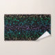 Jewelled Rainbow Music Notes Pattern Towel Set. Purple, blue, green. gold and pink musical notes and clefs in a floral pattern over black or your choice of background colour.