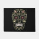 Jewelled Rhinestone Skull Bones Rug in yellow, white rhinestone and multi-coloured diamonds. Welcome Skull Mat Home Decor. Hand drawn yellow jewels decorating a skull on a black background,. Front or back door skull rug mat, Customize your text, colour, style on your jewelled skull mat to match your taste. Note: rhinestones and design and not actual, this is hand drawn jewel design on s skull.