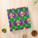 jewellery, background on Mardi Gras of purple and green rhombus, decorated gold lilies.