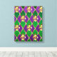 jewellery, background on Mardi Gras of purple and green rhombus, decorated gold lilies.