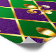 jewellery, background on Mardi Gras of purple and green rhombus, decorated gold lilies.