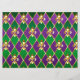 jewellery, background on Mardi Gras of purple and green rhombus, decorated gold lilies.