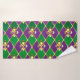 jewelry, background on Mardi Gras of purple and green rhombus, decorated gold lilies.