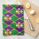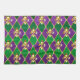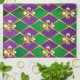 jewelry, background on Mardi Gras of purple and green rhombus, redecorated gold lilies.