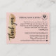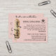 Jewelry Care White Chic Script Pink Thank You Card — a soft-blush mini card featuring elegant white script that thanks clients while including quick jewelry-care tips; fully editable text allows you to add shop info or socials in seconds, designed by CaMiDesigns. For orders, shipping, product details, and further help, please contact Zazzle Customer Care directly.