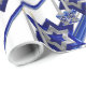 From my new Jewish Collection coming into stores now...Candlesticks-and-Star-1. A large triple layered (digital) hammered Star of David with two decorative candlesticks and holders. The candles appear lit. The star and holders are blue and silver. This design is available in assorted patterns and colours. Look for this design and coordinating pieces among my stores slowly coming in now.