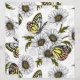Hand drawn vector pattern with jezebel butterflies and daisy flowers