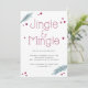Whimsical and simple Christmas party invitation template card featuring illustrations of holiday foliages including pine tree leaves and red berries. It says "Jingle & Mingle" at the top in cute hand drawn font.