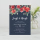 This design features winter watercolor floral detail and navy blue colour. Christmas party invitation.