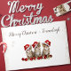 Three adorable kittens with red elf hats posing with red bauble ornaments, sets this design up for total cuteness. Make your greeting personalized right above the kittens. A snowy border on white background and two tiny paw prints in upper left corner.