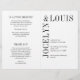 Modern folded wedding program (printed on paper and comes unfolded) featuring a minimalist black and white design with your names in a large font along the left side and top. This design is simple enough for a formal wedding yet makes a bold statement.
