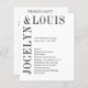 Programme de mariage moderne avec un design minimaliste noir et blanc avec vos noms dans une grande police le long du côté gauche et du dessus. Cette conception est assez simple pour un mariage officiel tout en faisant une déclaration audacieuse.