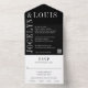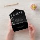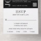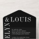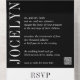 Modern all in one wedding invitation featuring a minimalist black design with your names in a large font along the left side and top. Use the template to generate a QR code or you may remove it in the design editing tool. This design is simple enough for a formal wedding yet makes a bold statement.