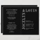 Modern folded wedding program (printed on paper and comes unfolded) featuring a minimalist black design with your names in a large font along the left side and top. This design is simple enough for a formal wedding yet makes a bold statement.