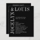 Programme de mariage moderne avec un design noir minimaliste avec vos noms dans une grande police le long du côté gauche et du dessus. Cette conception est assez simple pour un mariage officiel tout en faisant une déclaration audacieuse.