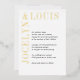 Modern gold foil wedding invitation featuring a minimalist design with your names in a large font along the left side and top. Your names are in real foil and all text on the front can be changed to foil in the design editing tool. The back has your monogram. This design is simple enough for a formal wedding yet makes a bold statement.