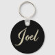 Ein sehr schöner edler personalisierter Button Schlüsselanhänger im whitegold Lettering Look auf schwarz für Joel.