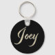 Ein sehr schöner edler personalisierter Button Schlüsselanhänger im whitegold Lettering Look auf schwarz für Joey.