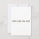 This greeting card showcases the "John 14:6" bible verse scripture KJV in a fine print font with brown letters plus bible citation over a picture of a cardboard with a torn piece of paper across with the scripture placed over the top with the citation in the circle below in this faith based theme from the KJV bible with the words "With God You Can!" on the back. Made with high quality, full colour printing on a 3.5" x 5" (portrait) or 5" x 3.5" (landscape) matte paper made and printed in the USA.