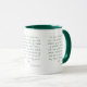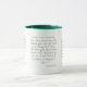 This two-tone mug displays a unique give you glory print font with green letters showcasing the "John 15:16" KJV bible scripture verse over a white background. This verse is referencing the Book Of John 15th chapter showing the 16th verse in this bible scripture quote theme from the King James bible. The rim & handle are glazed in matching colours available in 11-ounce or 15-ounce sizes microwave and dishwasher safe ceramic construction.