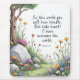 In a whimsical fantasy garden, a winding path leads through vibrant blooms. The inscription of John 16:33: "In this world, you will have trouble. But take heart! I have overcome the world." The image invites visitors to reflect, reminding them that challenges are part of the journey, even in a realm of wonder, but hope prevails.