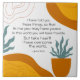 Inspirational quote scripture ceramic tile features modern shapes and plant designs in earth tones and simple, abstract forms. It features Bible Verse John 16:33, "I have told you these things, so that in me you may have peace. In this world you will have trouble. But take heart! I have overcome the world."