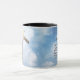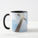 Inspirational quote scripture coffee mug depicts blue skies and white clouds with rays of sun shining down on a wooden cross. It features Bible Verse John 3:16, "For God so loved the world that He gave His only begotten Son, that whoever believes in Him should not perish but have everlasting life."