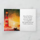 Christian inspirational quote scripture greeting card depicts a foggy night ocean watercolor painting including a boat and a red and white lighthouse with the light shining in the dark. It features Bible Verse John 8:12, "Jesus is the light of the world." The greeting can be customized or deleted for a hand written message._