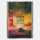Christian inspirational quote scripture throw blanket depicts a foggy night ocean watercolor painting including a boat and a red and white lighthouse with the light shining in the dark. It features Bible Verse John 8:12, "Jesus is the light of the world."