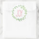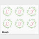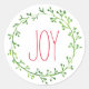 Simples et jolies autocollants de Noël avec une couronne d'aquarelle verte et le mot Joy dans une police rouge élégante.