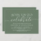 Modern Romantic Calligraphy, classy sage green, Wedding Rehearsal Dinner invitation card (Join us to celebrate). It is perfect for your wedding rehearsal dinner celebration party, before your best day. Add your details in matching lettering.