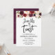 Burgundy floral, Join us to toast, wedding rehearsal dinner invitation card. Planning a wedding Rehearsal Dinner celebration with the to-be Bride and to-be Groom, before their BIG day? Invite the guests with this "Join us to toast" Perfect Elegant Wedding Rehearsal Dinner Invitation Card. Add your rehearsal dinner details in matching black font / lettering.