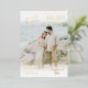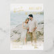 Informal and modern wedding invitation with a combination of script and serif fonts, your names and wedding date in large letters, and photos of the two of you. Photo wedding invitation in white with gold foil fonts personalized with two photos, on one either side of the invitation. Modern typography wedding invitation personalized with photos. Modern gold foil typography wedding invitation.