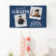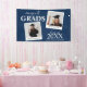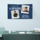 Modern double graduation party banner which features 2 photos of the graduate's. The banner has template text that reads 'CONGRATS GRADS, THEIR NAMES, YEAR OF GRADUATION, and THEIR SCHOOL OR COLLEGE NAME'. All font styles and colours can be changed by clicking on the customize further link after personalizing.